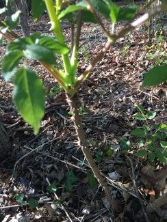 Low maintenance. Suckers quickly to form a thicket - suckers can travel a distance but easily removed. Spines - can use as a living fence. Showy white summer flower. Large leaves. Seeds are poisonous if chewed