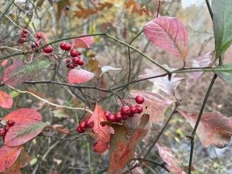Notes: Suckering. Beautiful white flowers and long-lasting fruit. Very effective in massed groupings. Fall foliage intense, shiny, raspberry to crimson, with purplish highlights. Delicate look. Can be planted in front yards since it is very well behaved. Doesn’t grow too tall or wide.