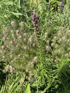 Wildlife value: Its flowers are attractive to butterflies, bees, and other pollinators. Larval forms of Schinia sanguinea feed on the flowers and seeds, and the larval form of the Liatris Borer Moth eat the stems. Goldfinches eat the seeds with relish. Plant NOVA Natives lists this species as particularly popular with the non-native honeybees