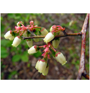 Wildlife value: Flowers attract butterflies and bees. This plant provides nectar for pollinators and supports Brown Elfin larvae. Adult Brown Elfin butterflies feed on flower nectar. Its fruit attracts small mammals, ruffed grouse, wild turkey, black bears, squirrels, and songbirds, including American Robin, Eastern Bluebird, Scarlet Tanager, Eastern and Spotted Towhees, Gray Catbird, Northern Mockingbird, Brown Thrasher, and Northern Cardinal. The twigs provide food source for deer and rabbits. Members of the genus Vaccinium support bees