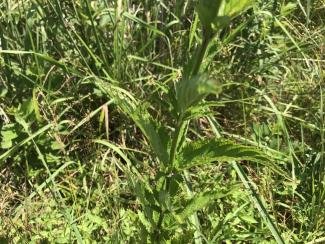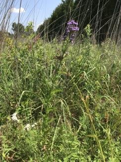Wildlife Value: Cardinals, sparrows, and juncos eat the seeds. Cottontail rabbits eat the foliage, however, most mammals avoid its bitter taste. Larval host plant for verbena moth and the common buckeye butterfly. Long and short-tongued bees collect the nectar and sometimes the pollen. Other bee pollinators include epoline cuckoo bees, eucerine miner bees, halictid bees, and the verbena bee (a specialist pollinator). In addition, the thread-waisted wasp, bee flies, thick-headed flies and golden soldier beetle are also known to all visit blue vervain.