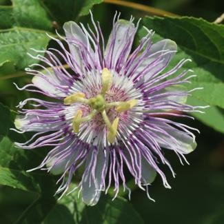 Notes: The exotic flowers and edible fruit of Purple Passionflower make this unique vine a striking ornamental plant for the garden. The common name, Maypop, refers to the fruit, which makes a loud popping sound when stomped on.