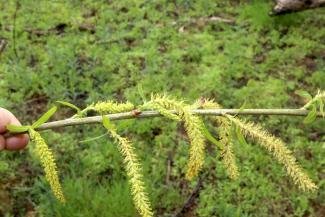 Wildlife value: This is a larval host plant for several butterflies, including Eastern tiger swallowtail, Mourning cloak, Red-spotted purple, and Eastern comma. Its buds and catkins are eaten by birds. It provides excellent leaf season cover for birds in wetland sites. Salix genus supports many species of specialized bees. Preferred food of ruffed grouse and pine grosbeak
